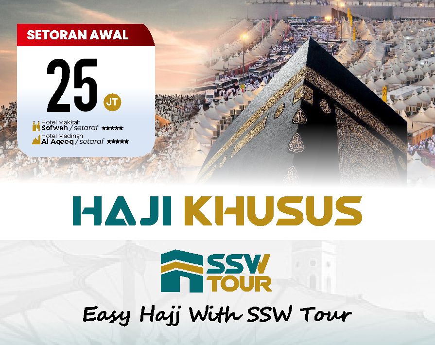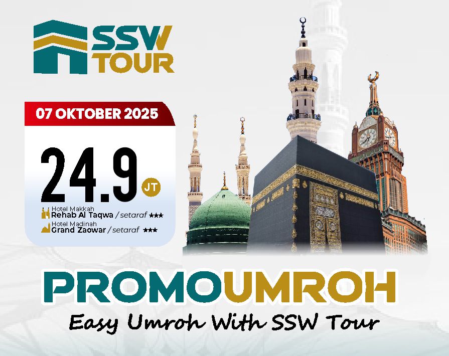 “SSW Tour adalah perusahaan travel ibadah resmi dengan izin PPIU & PIHK Kemenag. SSW Tour hadir untuk mewujudkan perjalanan umroh dan haji yang aman, nyaman, dan penuh makna. Dengan layanan profesional dan pengalaman, kami pastikan ibadah Anda lebih tenang dan berkesan.”